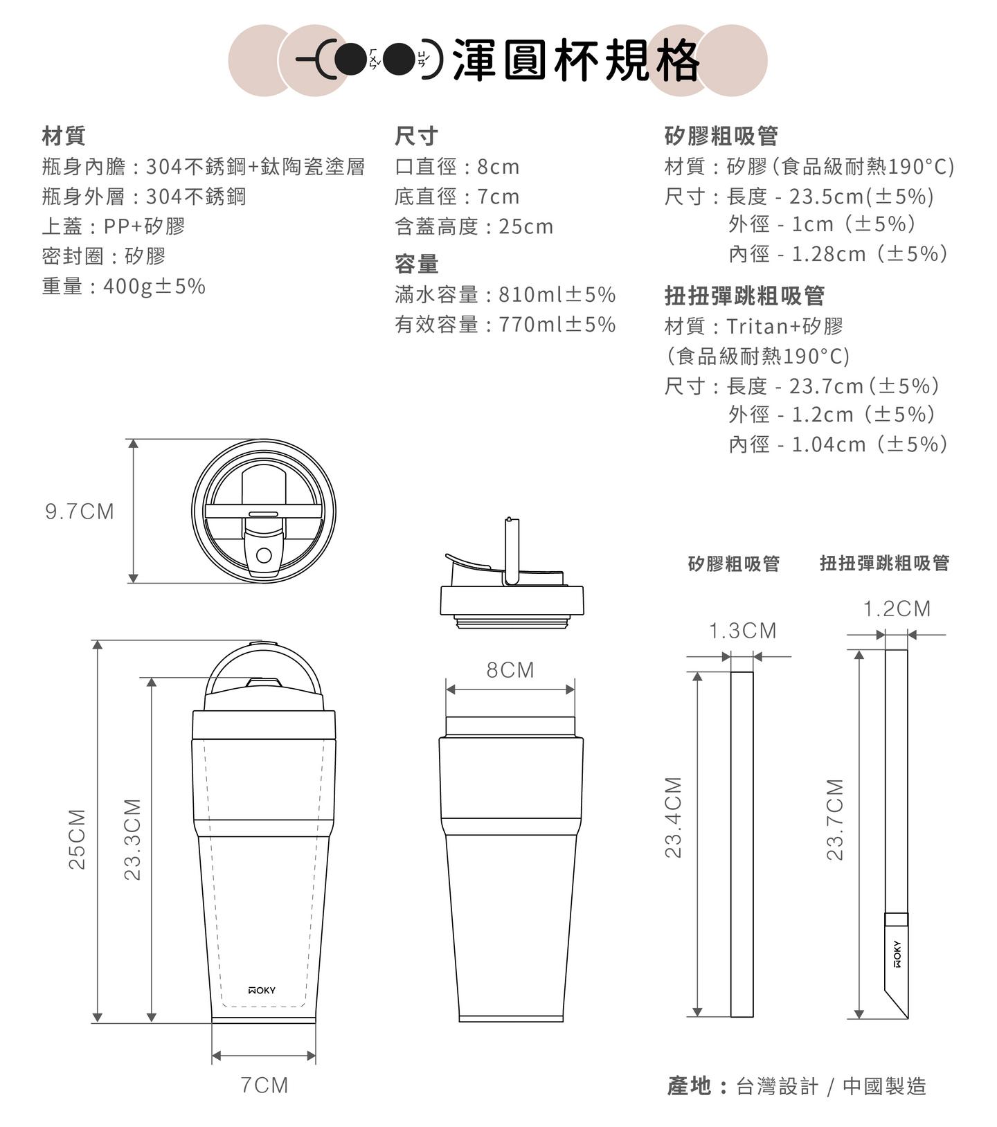 渾圓杯(一入組)內容物:含止水塞、矽膠粗吸管、扭扭彈跳吸管(粗);二入組內容物數量以此類推。