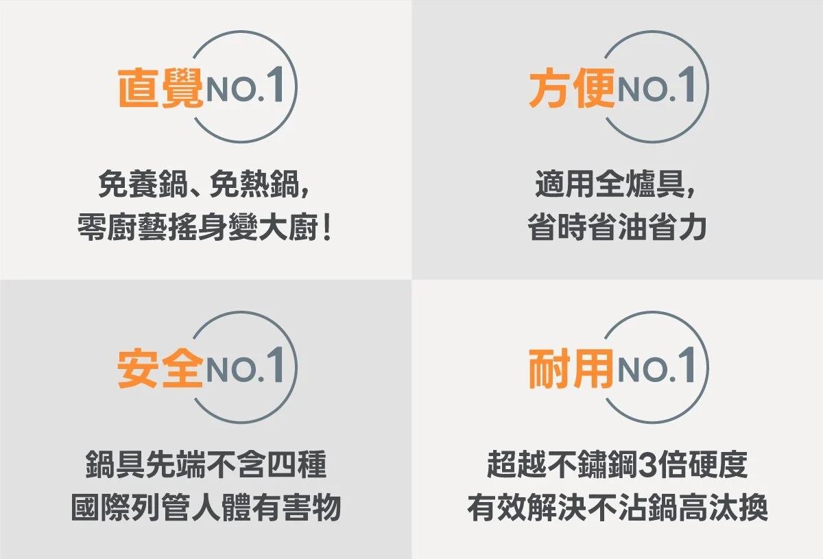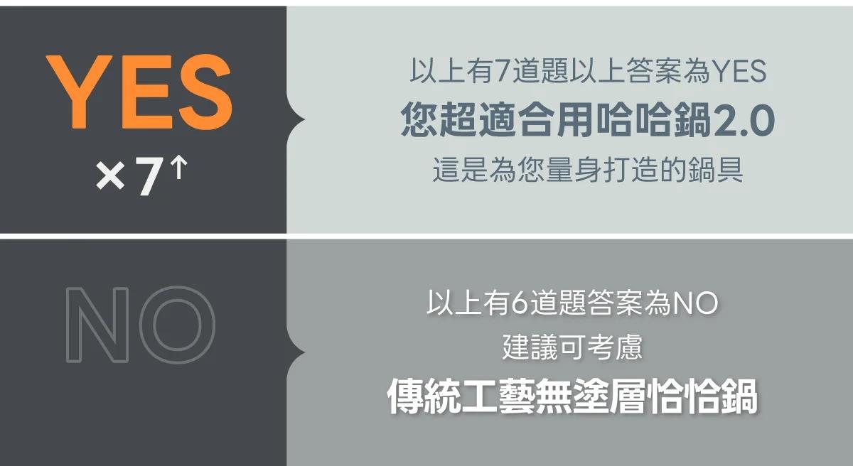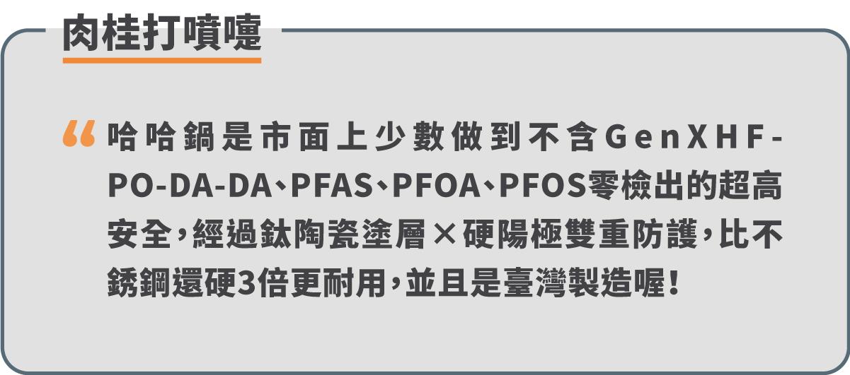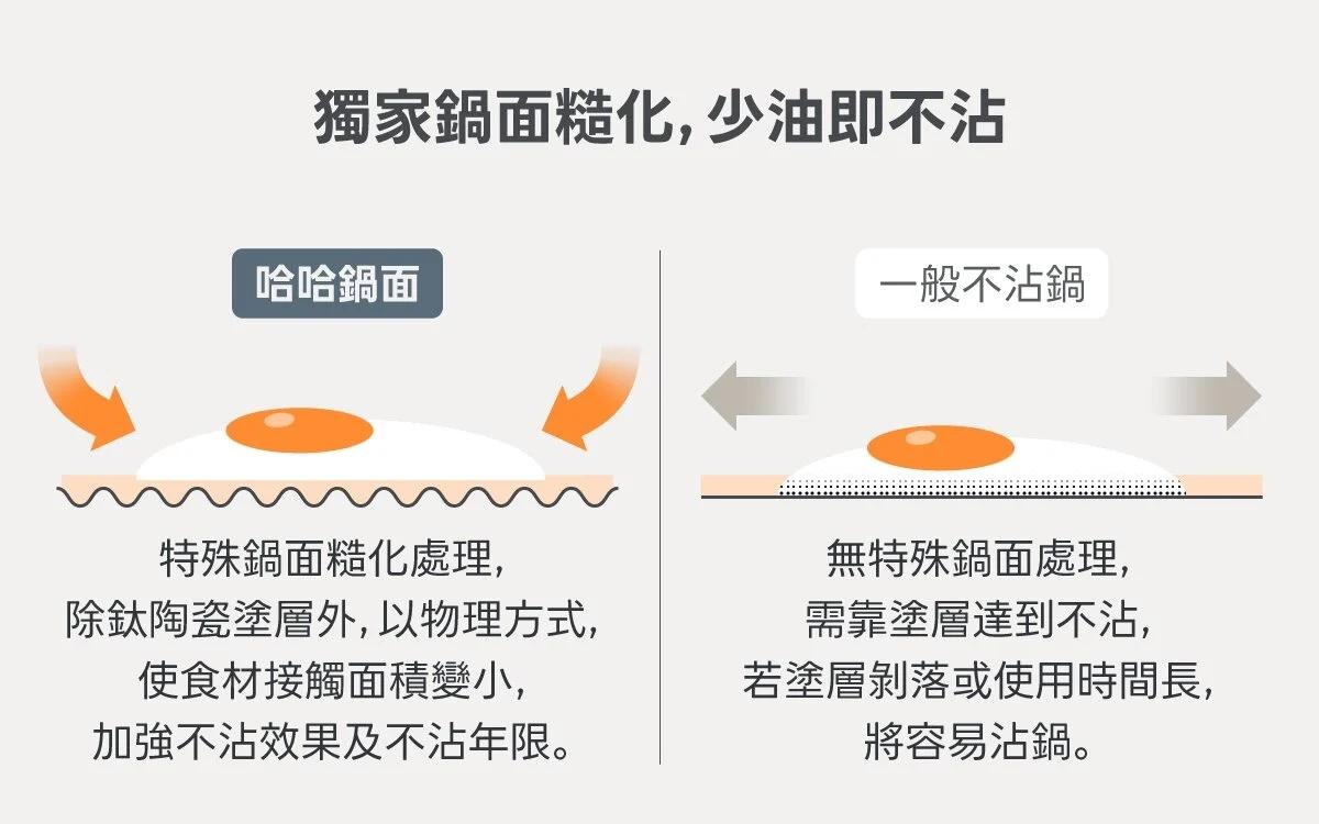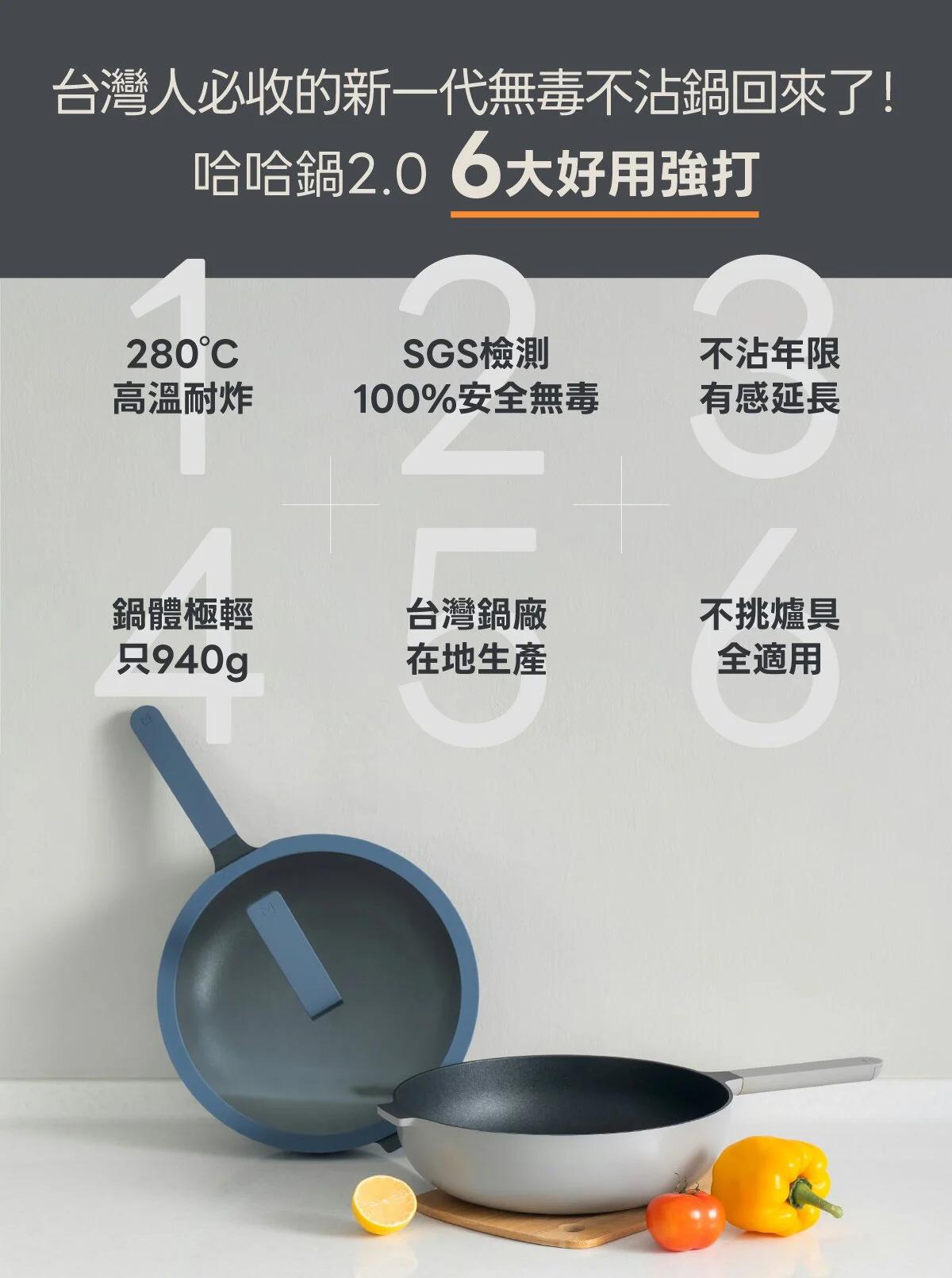 耗時三年,超過 100,000 支鍋子打掉重練,2.0 哈哈鍋全新升級!少油即不沾,讓料理變得更簡單,煎煮炒炸超在行。引領國際級安全, SGS 及歐盟全面檢測 PFAS 235 項零檢出,重新翻轉好鍋定義!