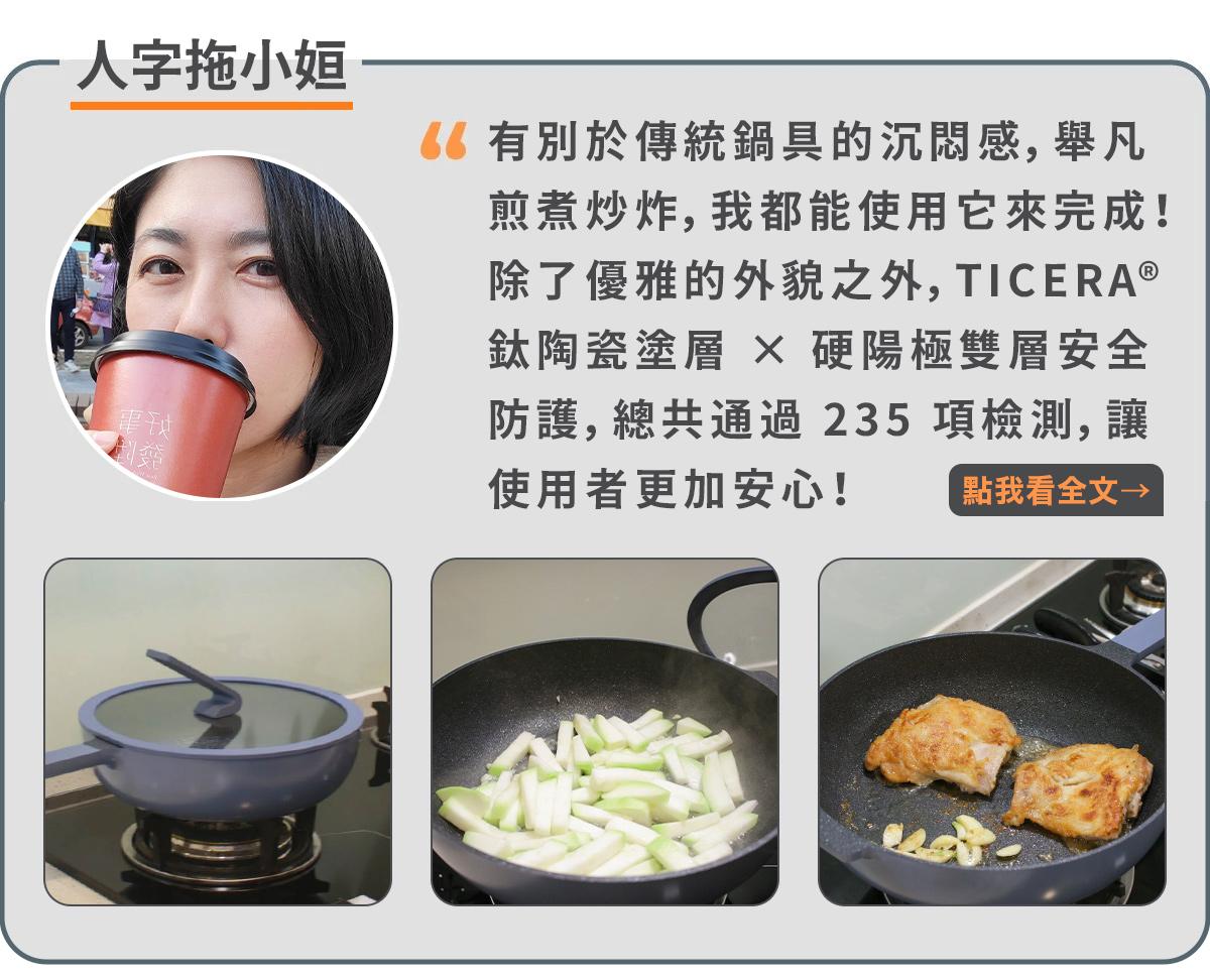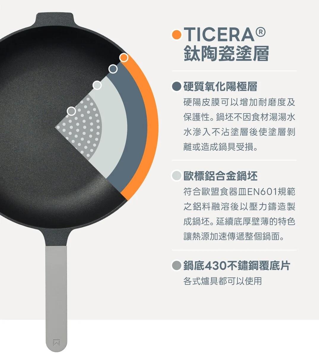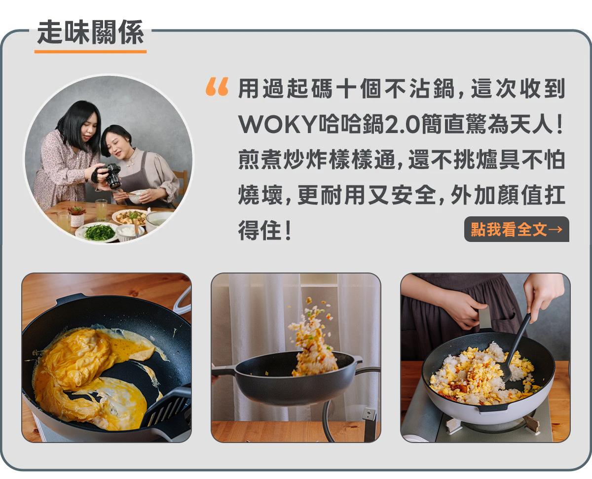WOKY 獨家研創鈦陶瓷面料將不沾耐用度大幅躍進,更甚市面不沾鍋,耐用很有感!