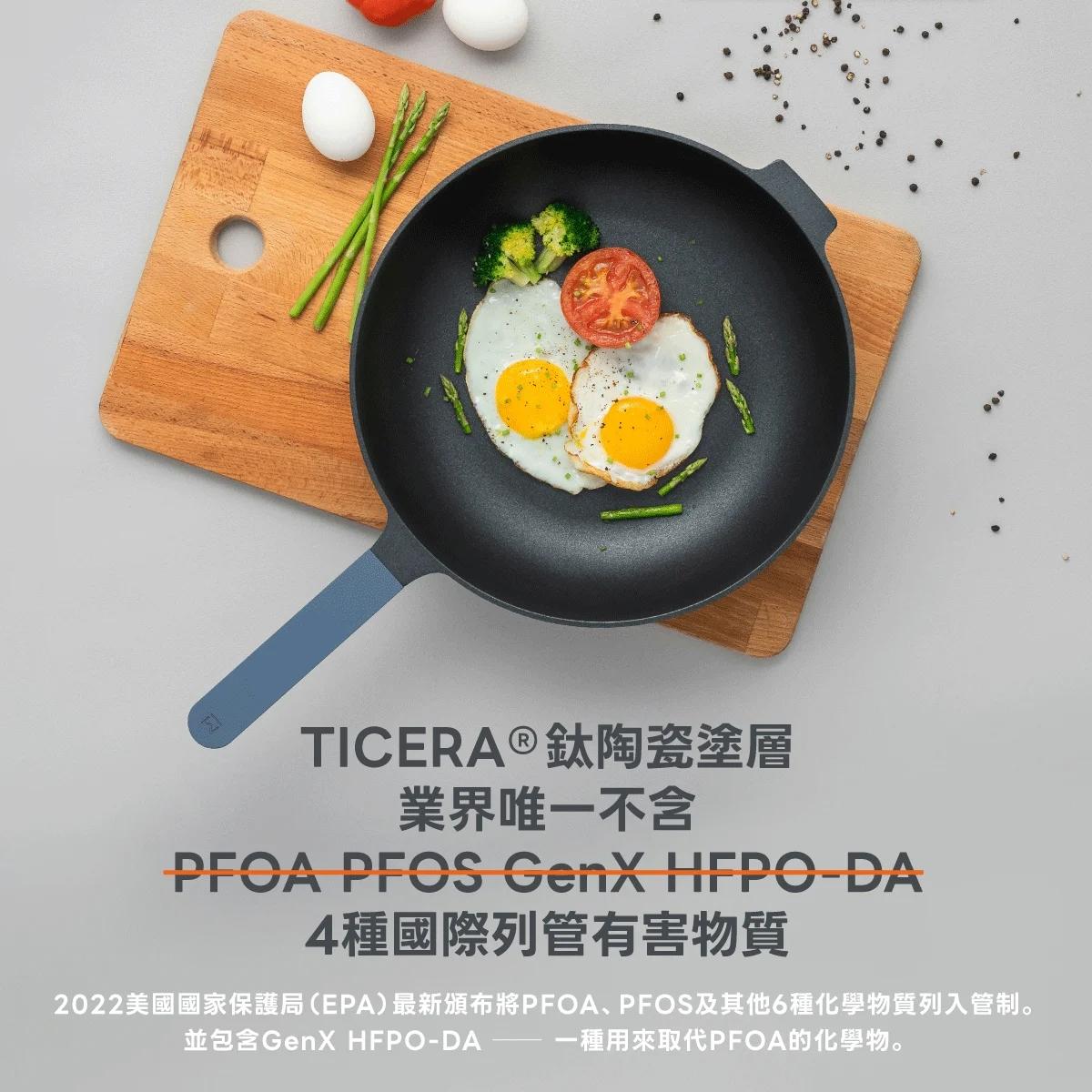 • TICERA® 為 WOKY 獨創鈦陶瓷塗層,經 SGS 檢測,不含 PFOA、PFOS、PFAS,最新檢測出爐無取代 PFOA 的 GenX HFPO-DA ,自主檢驗,就為了讓大家吃得更安心。