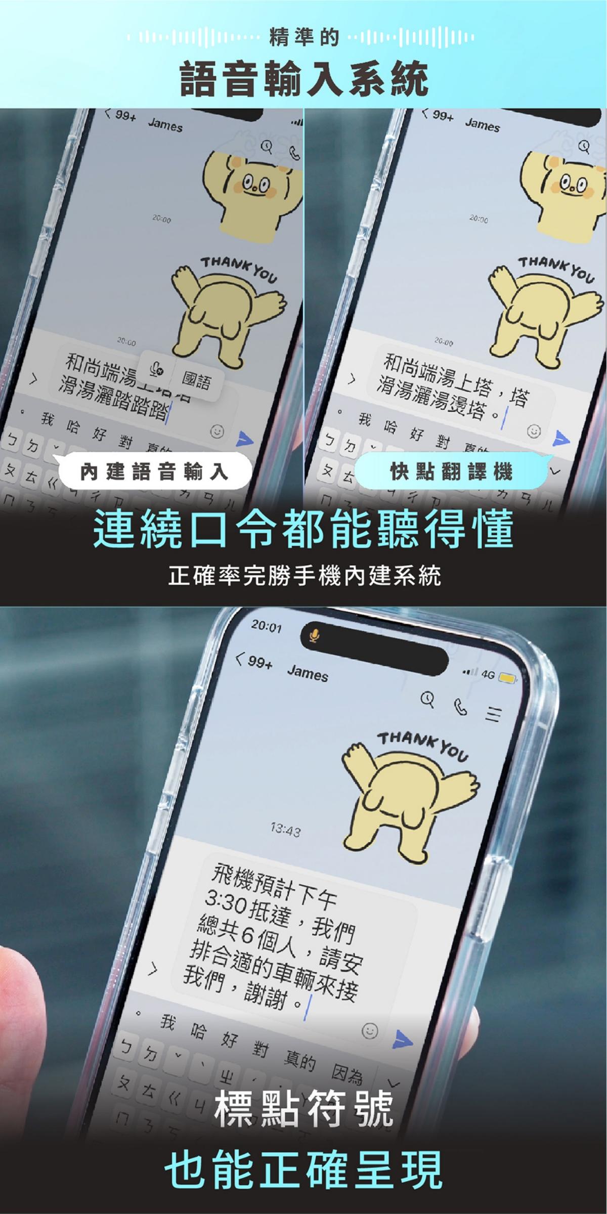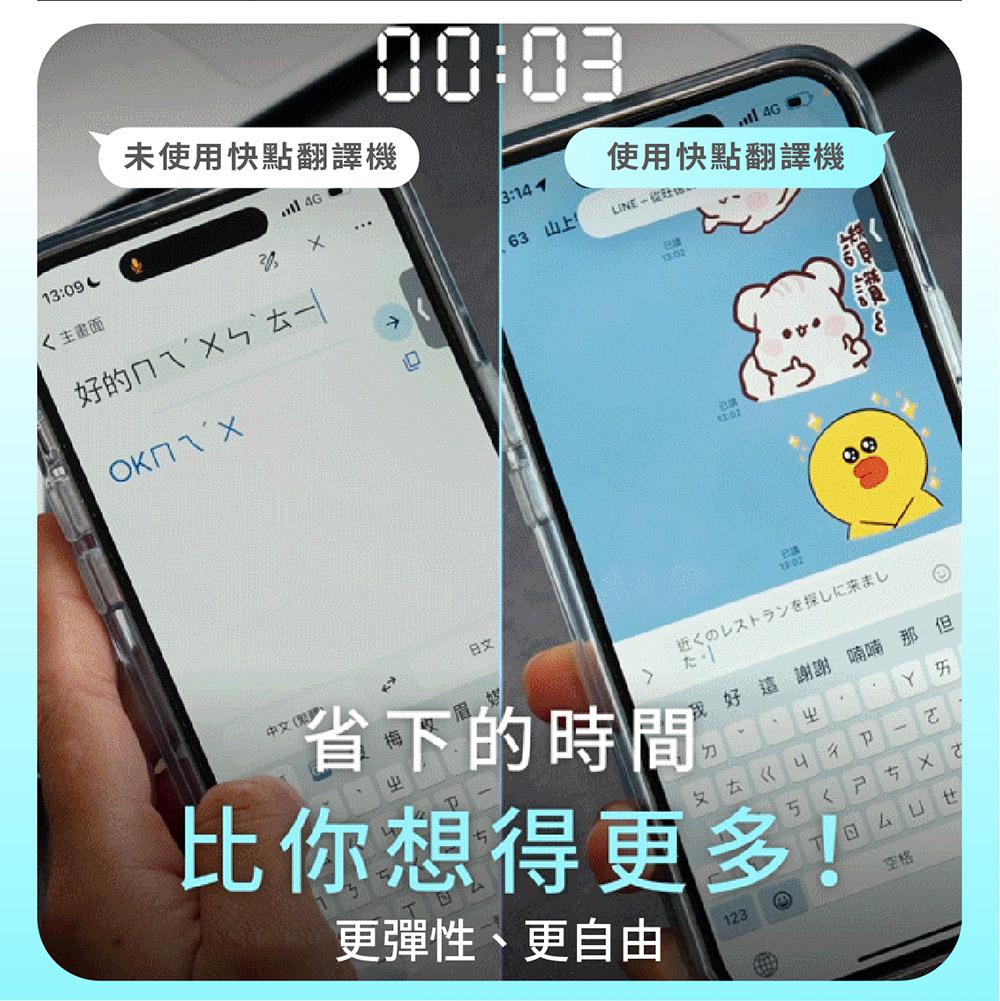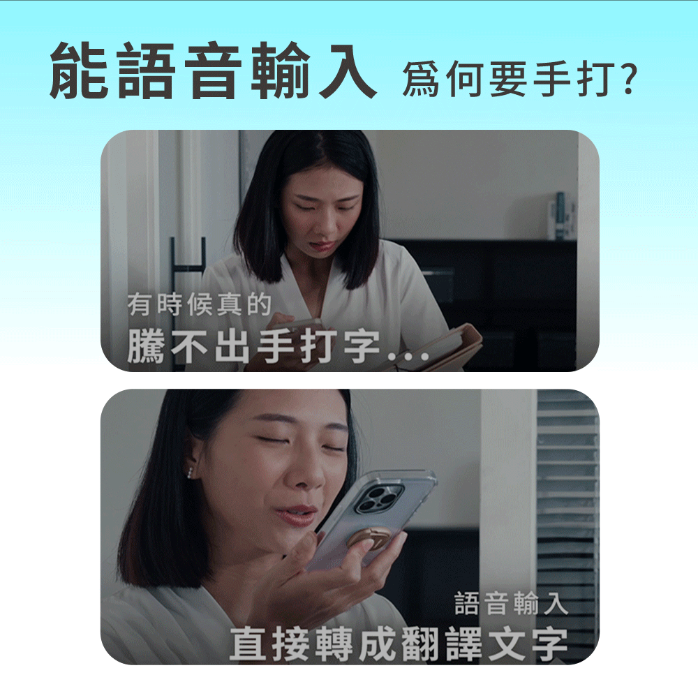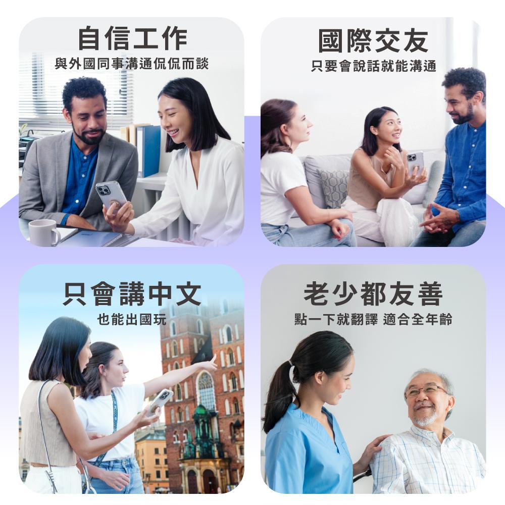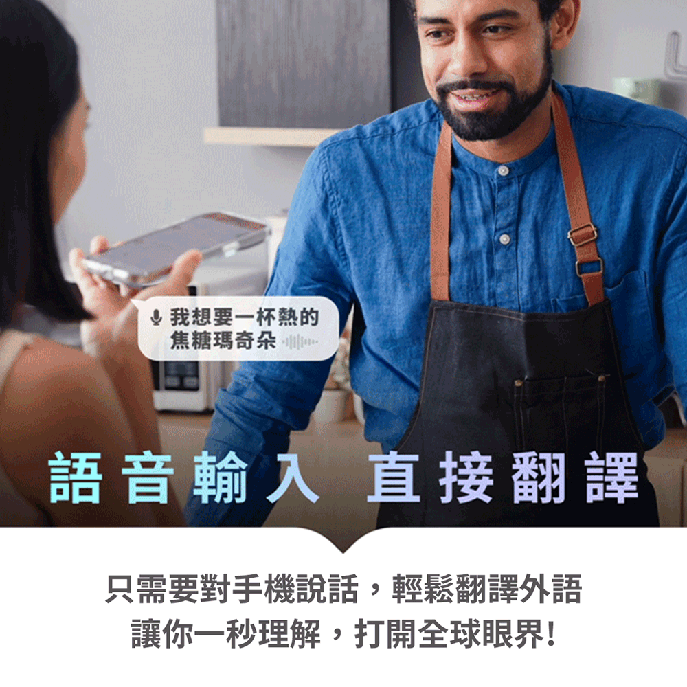 支持 100 多種語言互譯,可以精準識別語音輸入,辨別語意自動加入標點符號,無論是出國旅遊、國際交友,甚至是跨國工作,一來一往的跨語言溝通絲毫不費力,就算只會講中文也可以輕鬆與世界接軌!