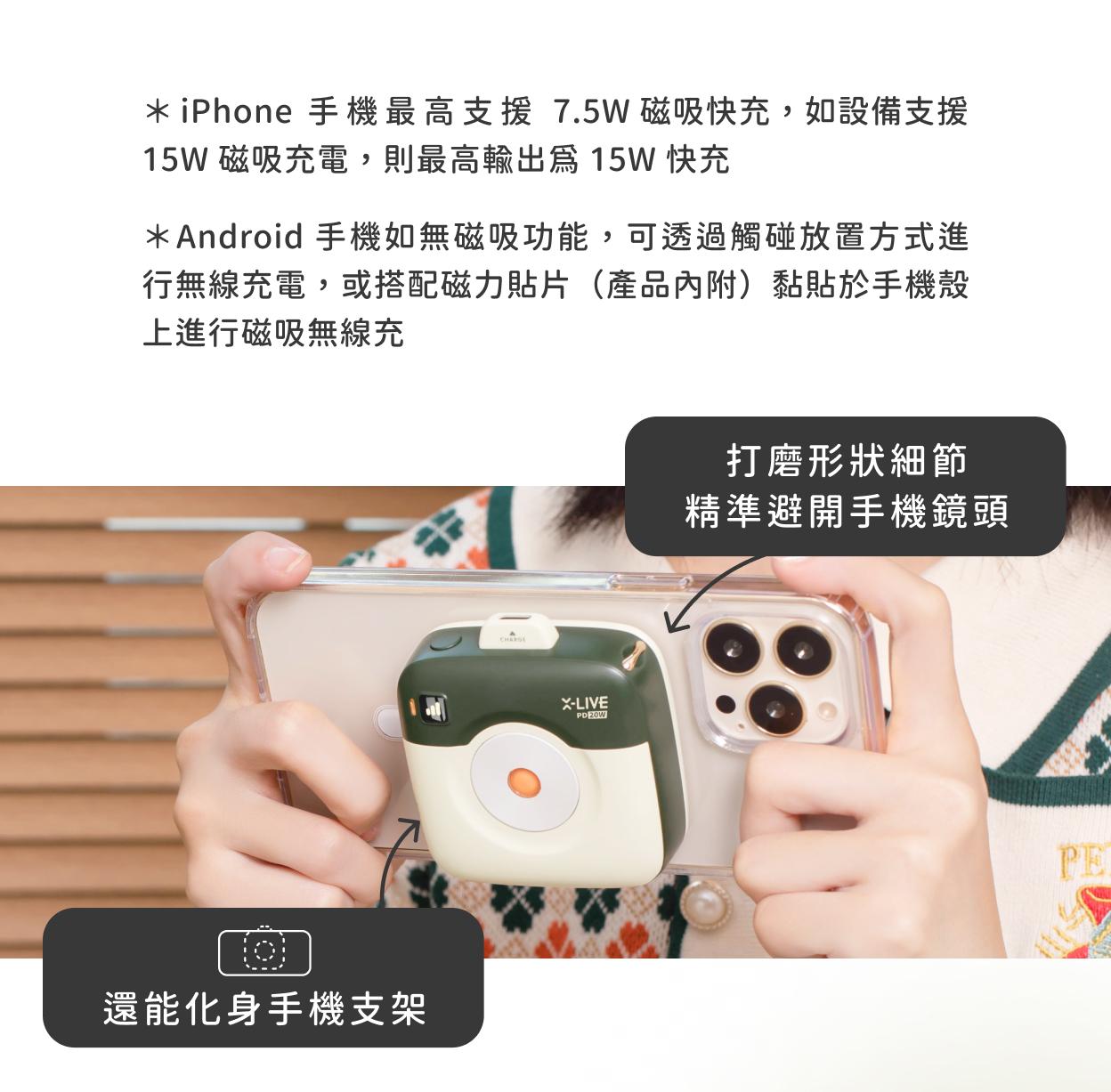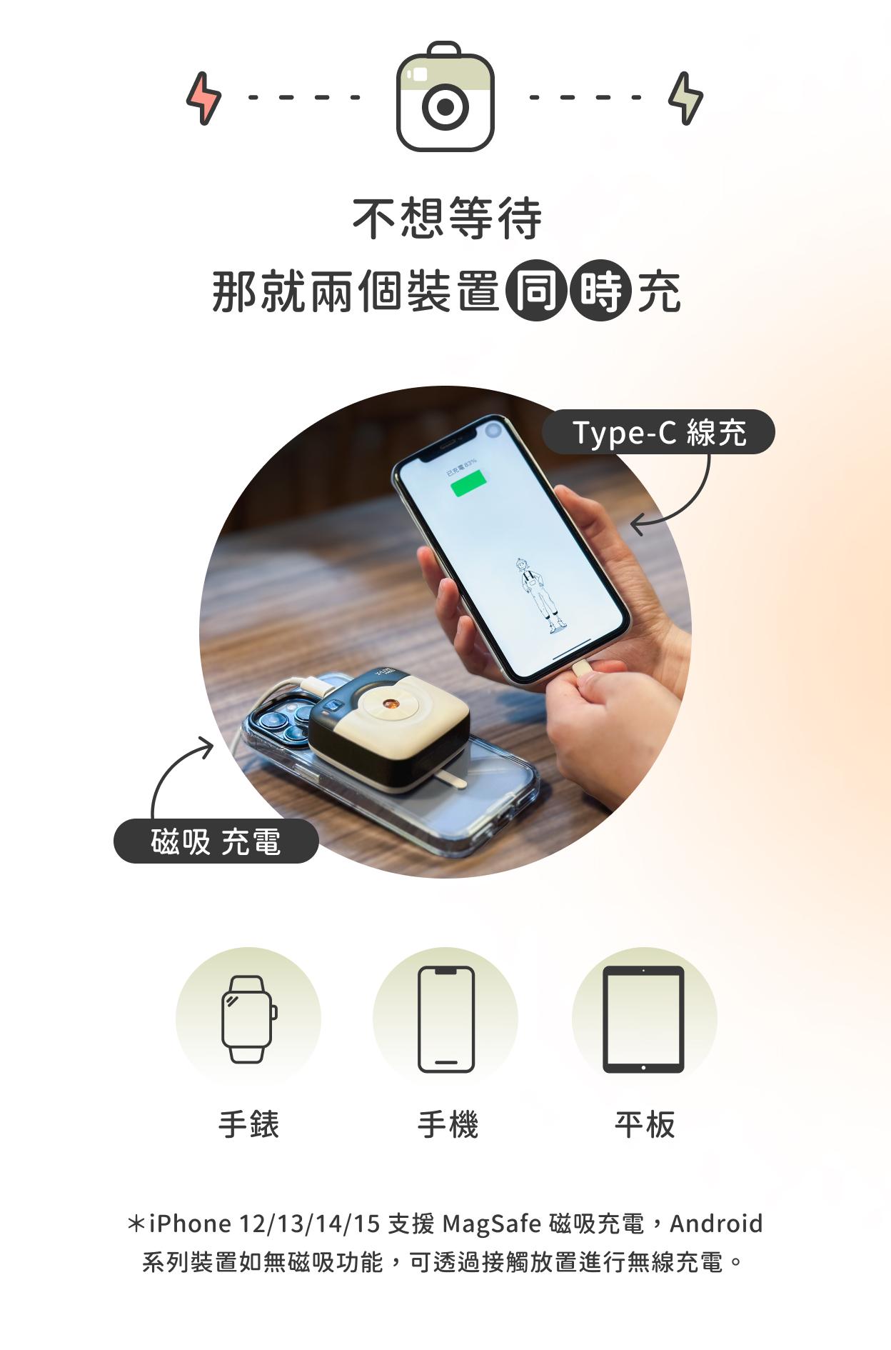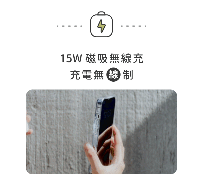 - 15W 無線磁吸快充,精準對位不檔鏡頭
