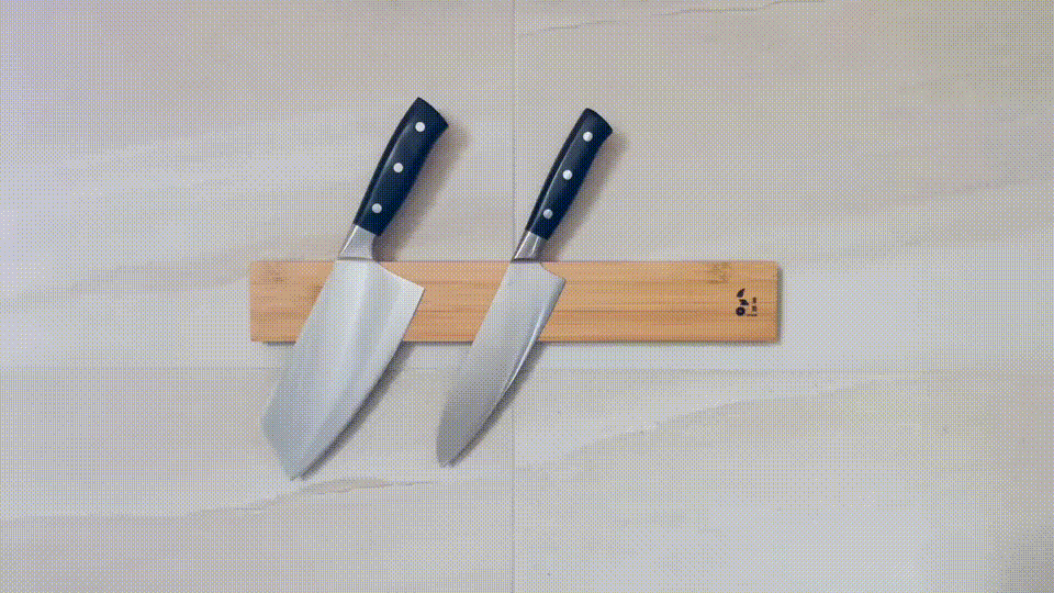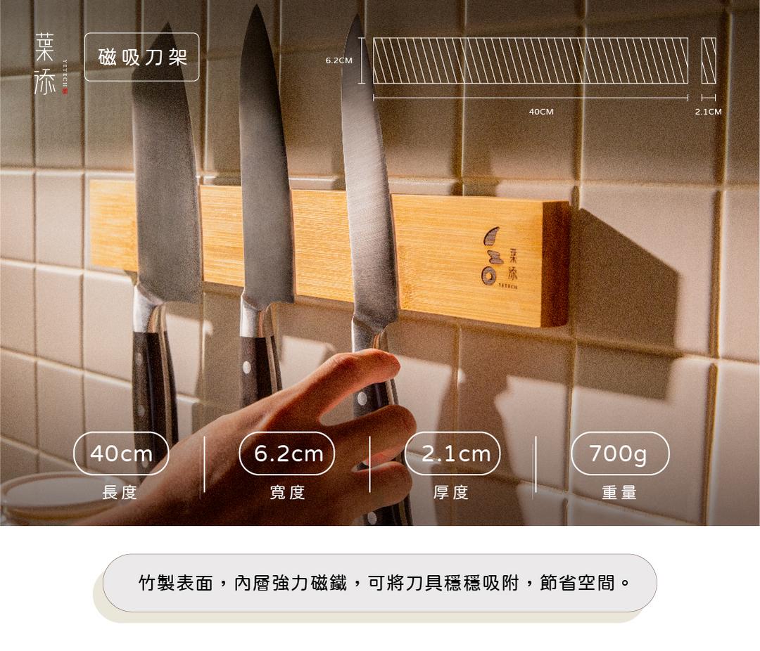 表面光滑不傷刀,內層強力磁鐵,可以穩穩吸附刀具。壁掛式刀架,能避免碰撞,同時也能保持通風不發霉。