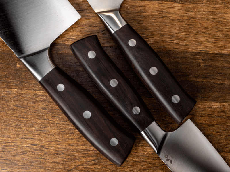 材質:高碳高鉻鋼芯、430 不鏽鋼、黑檀木柄
