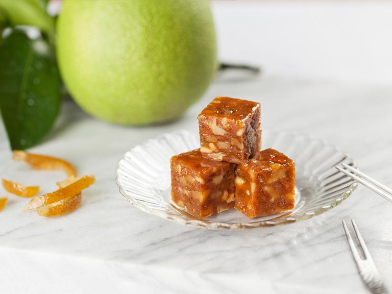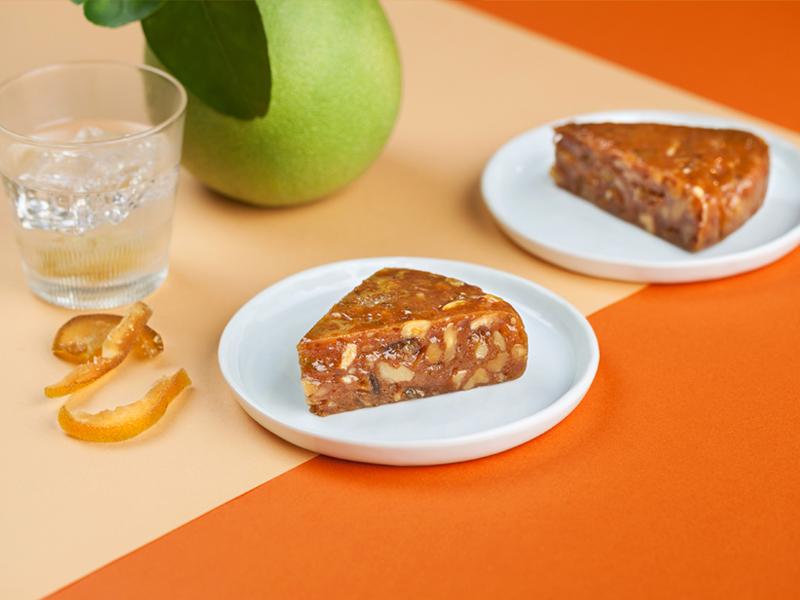 常溫吃食用,無需任何烹調過程,可感受到綿密的糕點與滿滿用料,清甜柚子乾與爽脆核桃仁,讓你齒頰留香。若經過冷凍,取出放置退冰過後,不僅吃起來冰涼消暑,也比常溫時更加 Q 彈,擁有多變豐富的口感體驗。