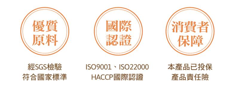 檢驗報告:SGS 檢驗、ISO9001、ISO22000、HACCP 國際認證