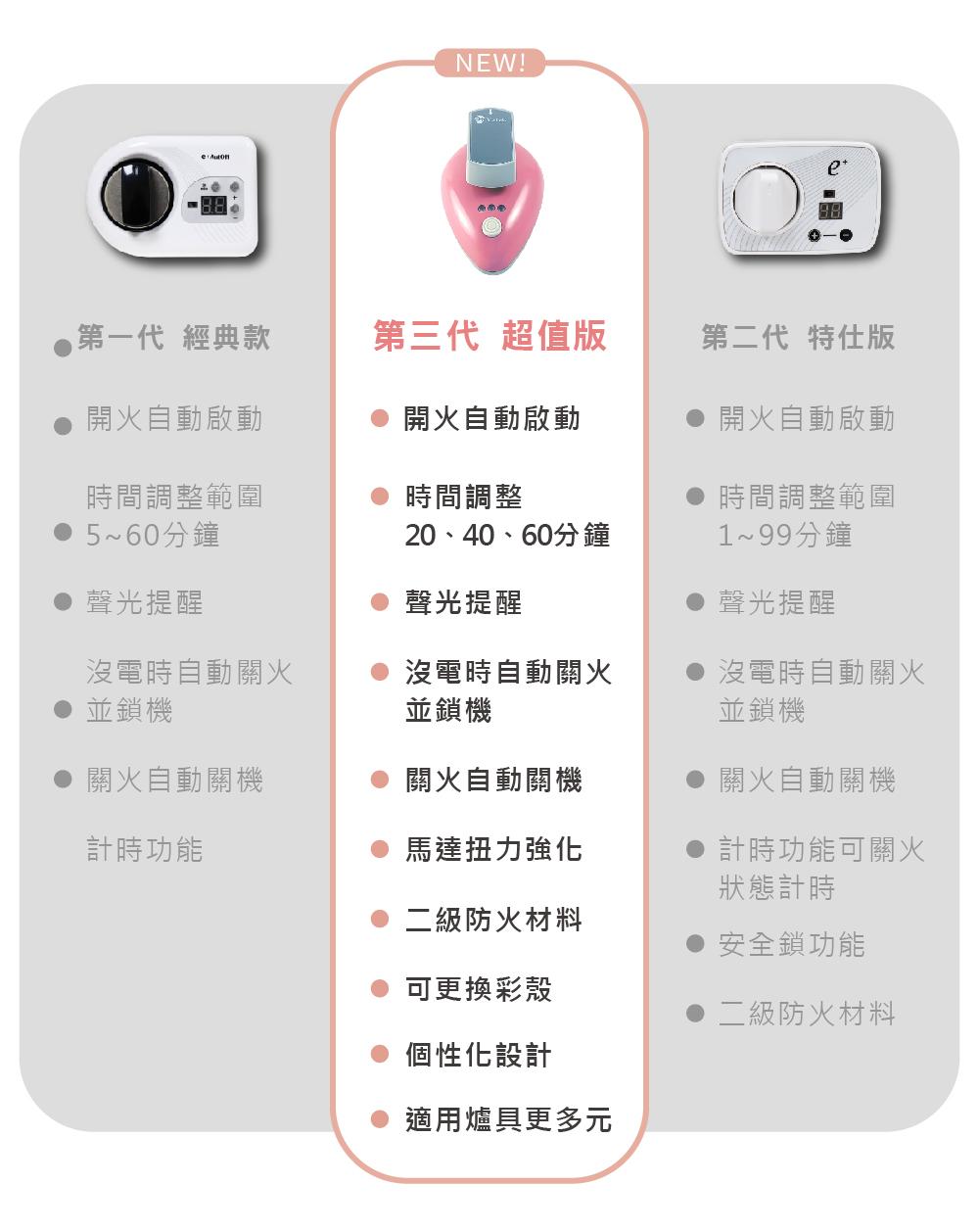 e+自動關超值版全系列比一比!