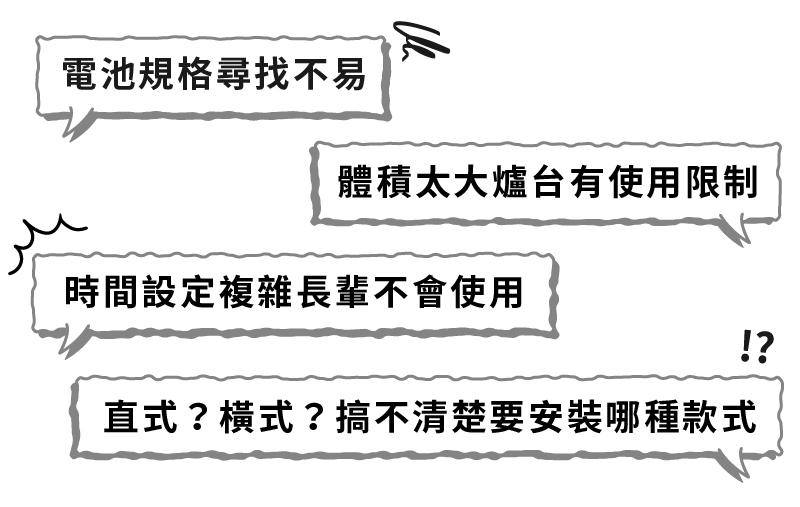 告別砸大錢費工更換爐具管線,自行即裝即用,連使用習慣都不必更改,開火就啟動,與爐火同步神關閉!