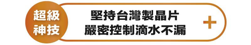 除了馬達強韌還不夠,e+ 自動關超值版堅持只使用台灣製晶片,確保電路控制完全精準無虞,讓經得起考驗的 MIT 品質時時守護一家平安。