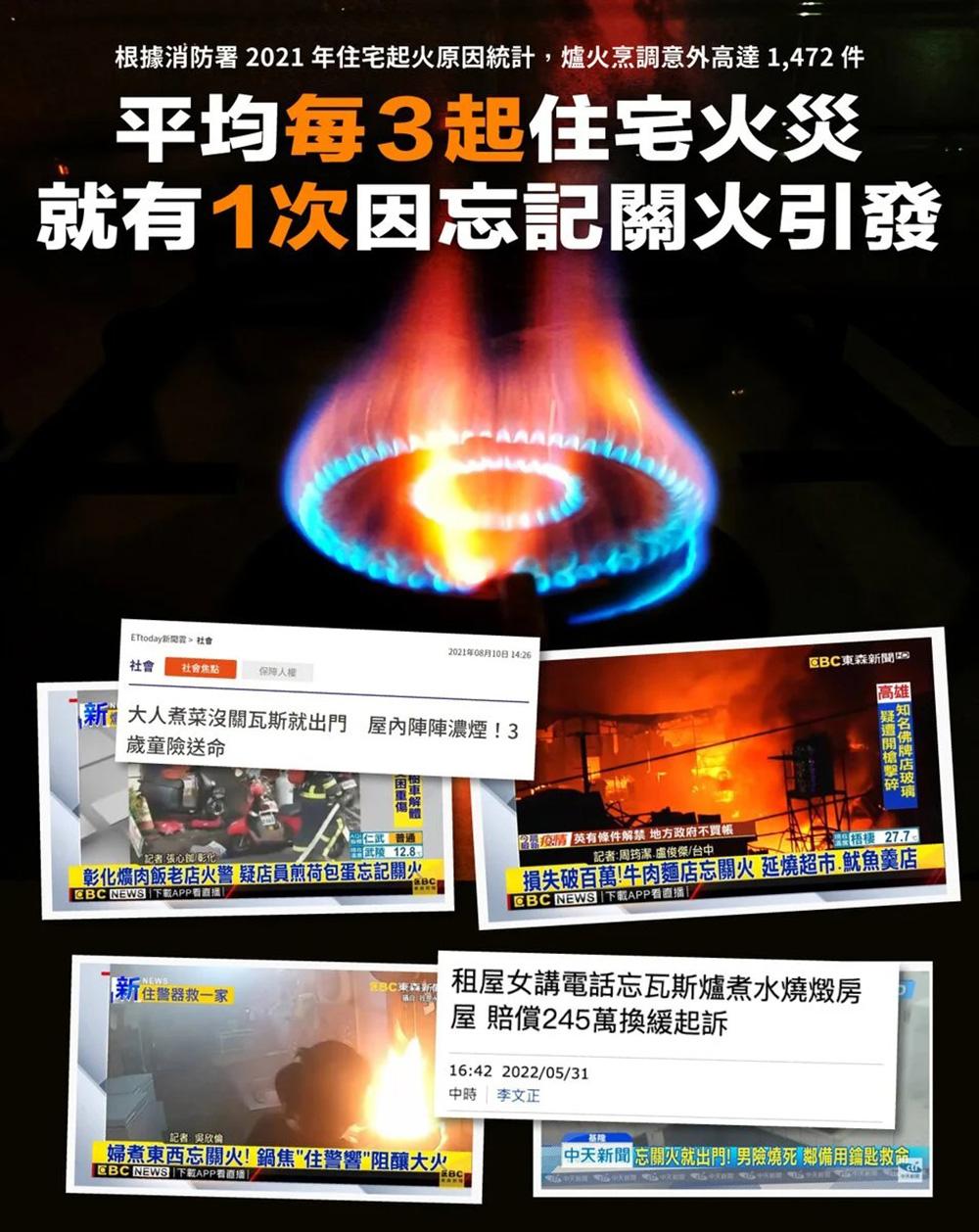 - 全球首創自動關火,台灣研發生產